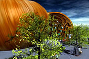 einem überdimensionalen Schneckenhaus, einer gigantischen Weltkugel,